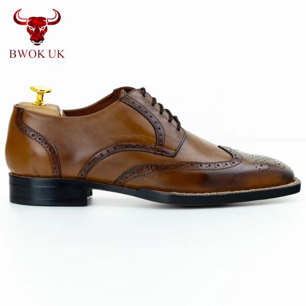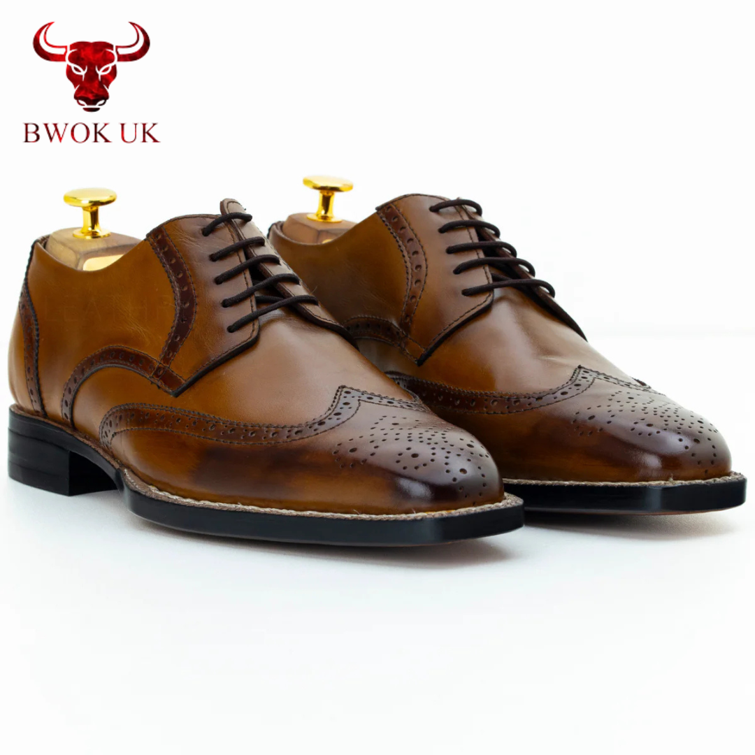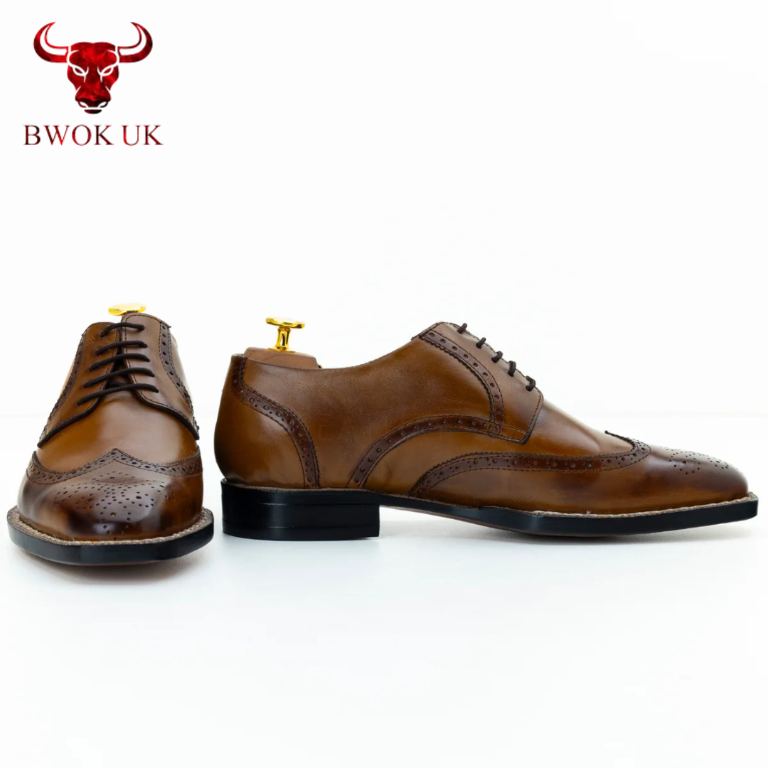The Ashcroft Handmade Brogue Derby adapts effortlessly to your every ambition, seamlessly bridging formal sophistication and casual charm. Lace it up with a tailored suit to command attention at formal events, or pair it with chinos for a polished yet relaxed look—the tan brown patina and brogue detailing elevate every outfit with timeless allure. Handmade with customizable color options, The Ashcroft offers a perfect fusion of lace-up durability and versatile elegance, urging you to step into every moment with a presence that captivates.