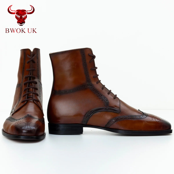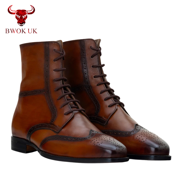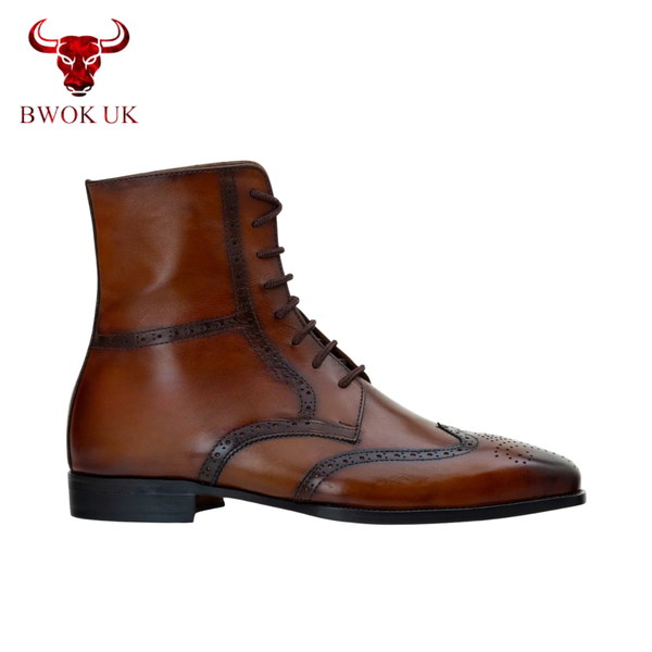 Marrying tradition with modern flair, The Hudson’s design is inspired by classic brogue aesthetics but reimagined with a bold ankle boot silhouette. The wingtip almond toe with intricate full brogue perforations captures a sense of timeless elegance, while the derby lace-up closure offers a versatile and adjustable fit. The ankle-high cut introduces a rugged edge without compromising sophistication, making these boots equally suited for boardroom meetings or weekend adventures. This harmonious blend of refined details and sturdy design makes The Hudson an essential piece for any discerning gentleman’s wardrobe.