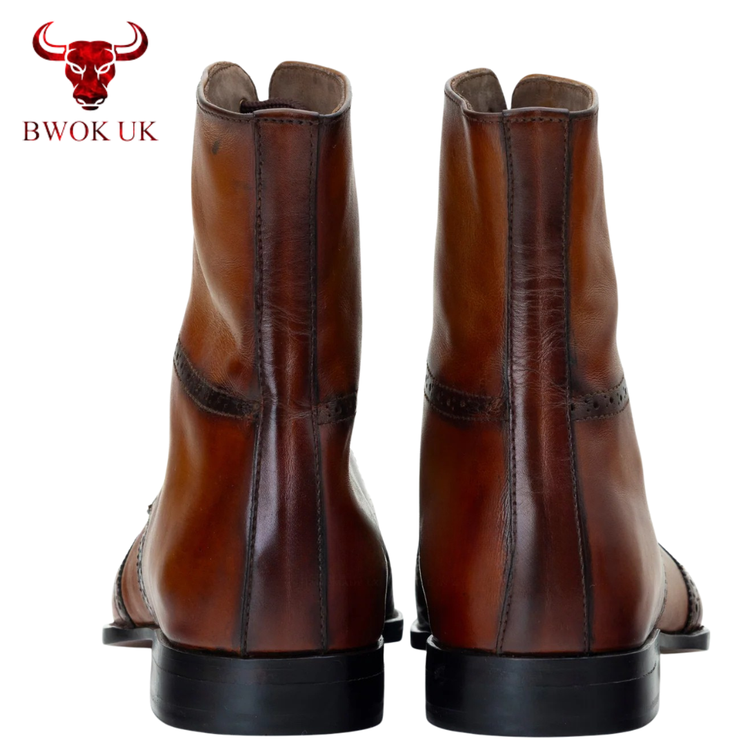 Designed to accompany you from day to night, The Hudson Derby Ankle Boots excel in versatility. Their rich, hand-painted brown patina pairs beautifully with everything from tailored suits to casual denim, adapting effortlessly to various occasions and styles. Whether you’re commanding a meeting, enjoying a weekend outing, or attending a special event, these boots bring confidence, comfort, and unmatched style to every step. The blend of tradition and contemporary design makes The Hudson a true investment in both fashion and function.